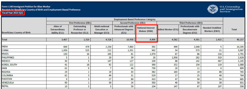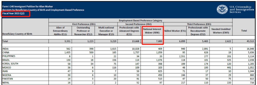 2023财年第一、第二季度的NIW移民申请量分别为8,806和7,800,总数大幅超过了2022财年全年的申请数据。