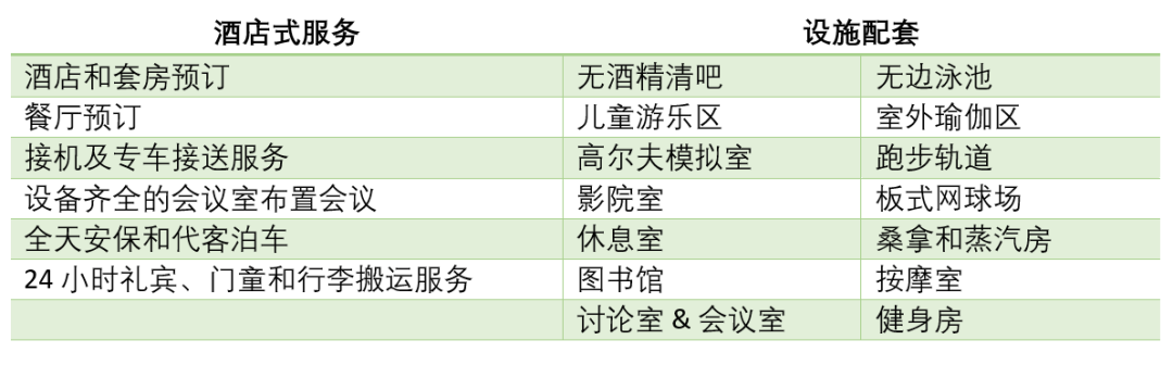 社区内配备了完善的设施,私人停车场、社区零售商、健身房、休息室、办公空间、图书馆、水疗室等一应俱全。