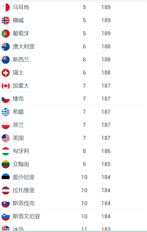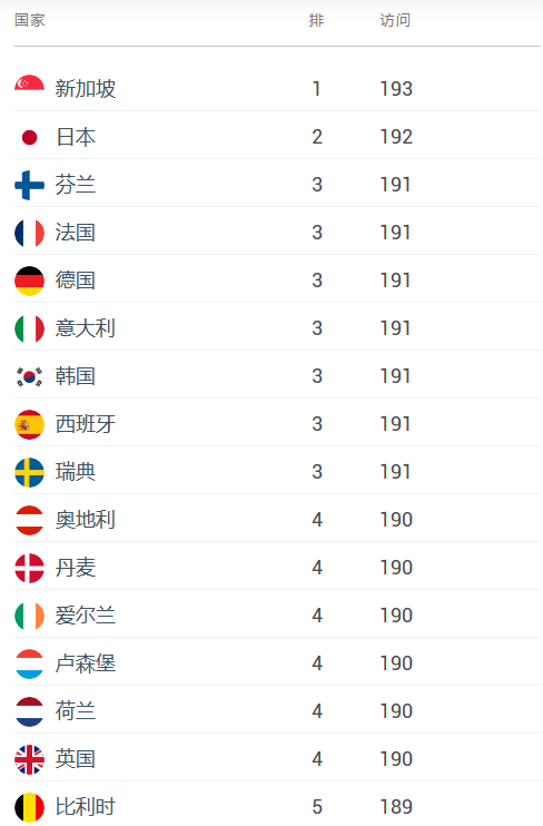 亨利护照指数是根据护照持有人无需事先签证即可进入的目的地数量,对世界上所有护照进行原始的权威排名。