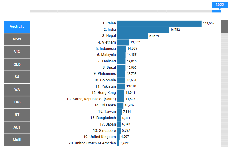 维州:国际学生人数为160,242人,占澳大利亚学生总数的30%,其中中国学生占据43,473人