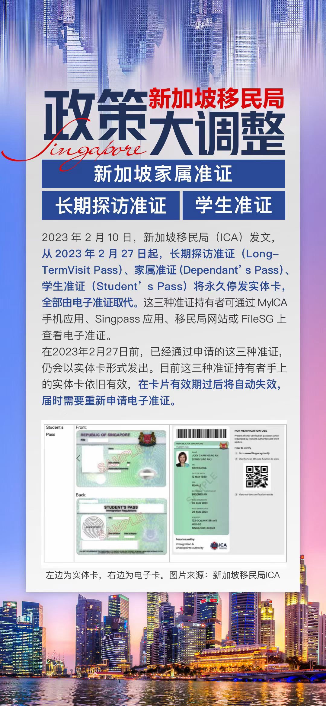 2023年2月27日起,新加坡家属准证,长期探访准证,学生准证将发放电子卡,停发实体卡‼️