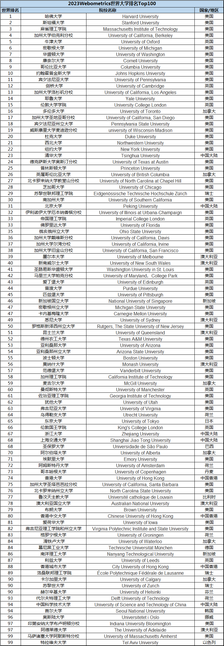 近日,2023年新版的WRWU世界大学排名(Webometrics Rankings of World Universities)发布了!