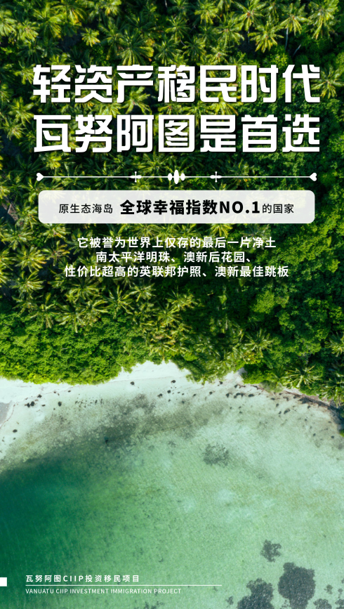 瓦努阿图CIIP投资移民=法案支持+性价比高 低则10万美元+零税天堂+全球通行140+国+身份备份+资产安全+教育红利。优势明显,吸引了越来越多的高净值人群关注。