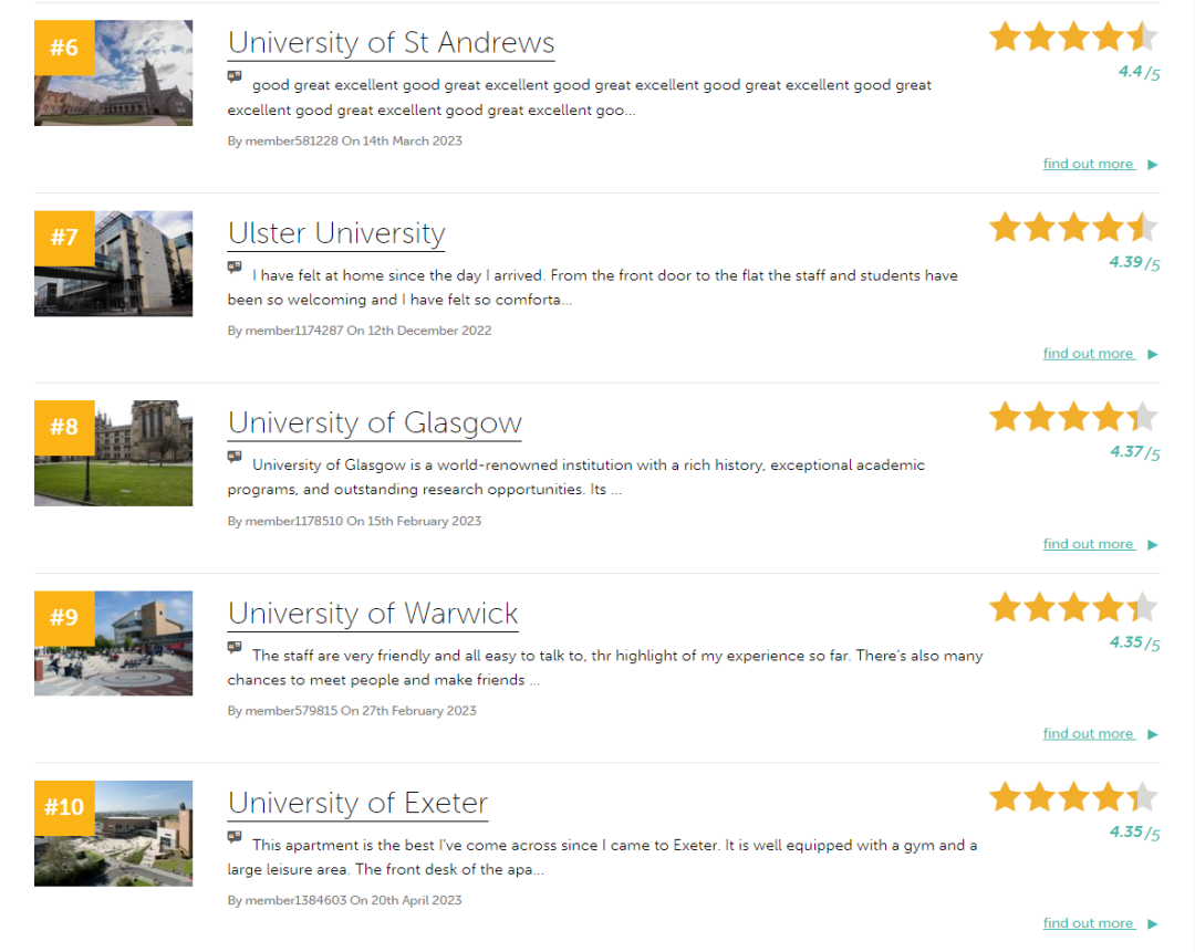 Student Crowd发布的英国大学排名是由在每所大学实际学习或仍在学习的学生投票选出的。在Student Crowd可以看到学生真实的反馈,指标内容与学生生活息息相关。